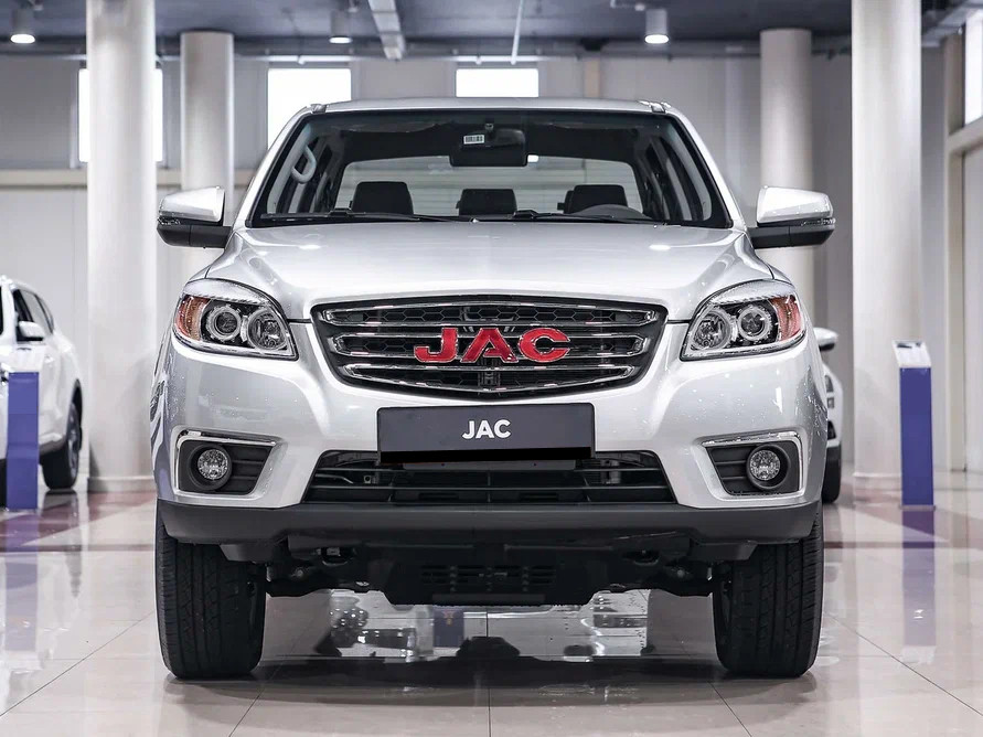 Внешность китайского пикапа JAC T6 в действительности внушительна. Автомобиль выглядит мощно и немного грозно. Все из-за размеров пикапа. Достаточно только взглянуть на 17-дюймовые диски и высокий клиренс. По мощному внешнему виду сразу становится понятно, что автомобиль проедет не только по городским дорогам, но и в труднопроходимых местах.